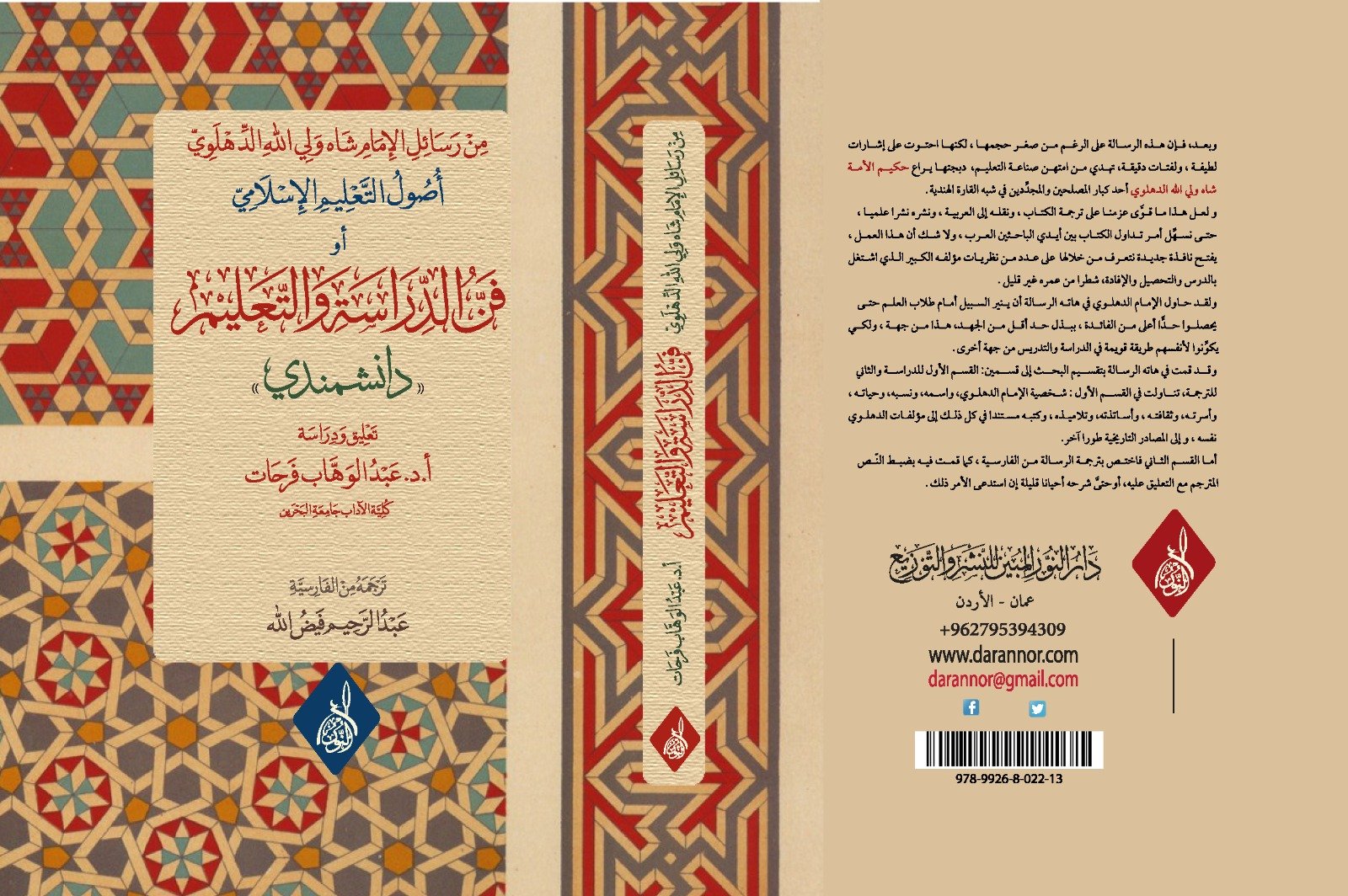 أصول التعليم الإسلامي للإمام شاه ولي الله الدهلوي رحمه الله، أو ما يعرف بفن الدراسة والتعليم (دانشمندي)، بتعليق ودراسة: أ.د عبد الوهاب فريحات، وبترجمة أ. عبد الرحيم فيض الله، حفظهما الله.