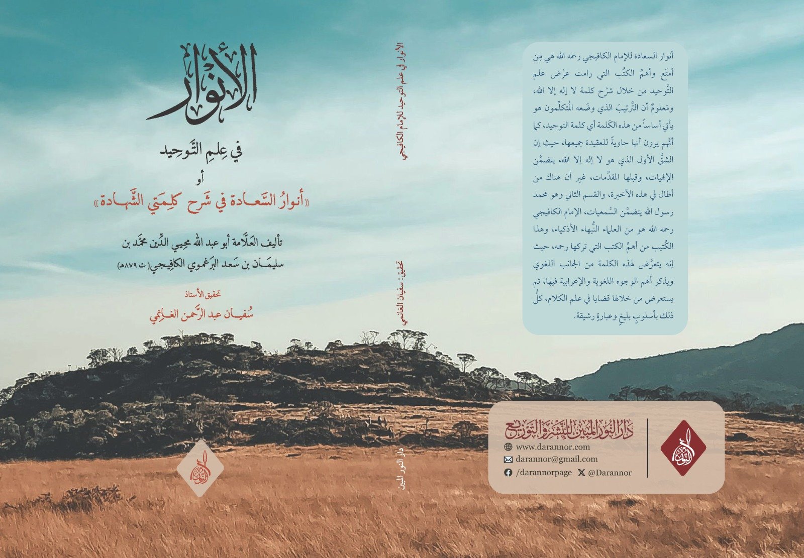 الأنوار في علم التوحيد، أو أنوار السعادة في شرح كلمتي الشهادة، للعلامة أبي عبد الله محمد بن سليمان الكافيجي (ت879 هـ)، بتحقيق الباحث الهُمام أ سفيان الغانمي حفظه الله