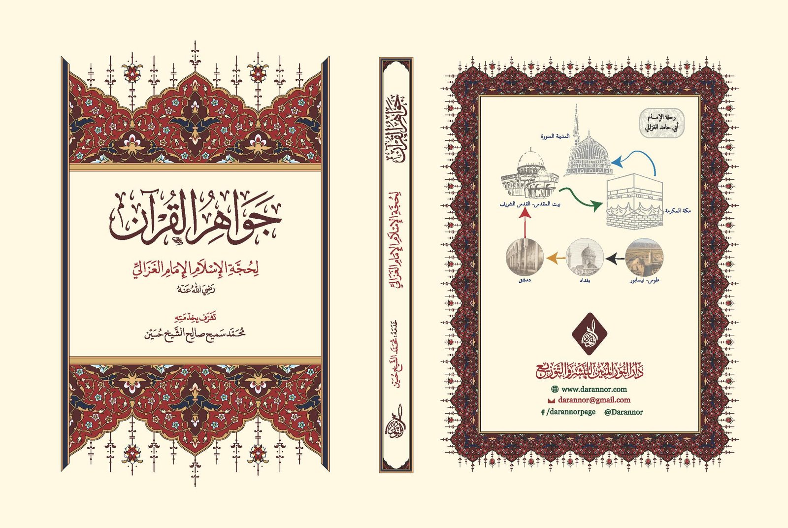 جواهر القرآن لحجة الإسلام الإمام الغزالي وهو كتاب قلَّ نظيره في الكتب، وقد فتح الإمام به آفاق التفكر والتدبر في القرآن العظيم، وهو أساس كتابه الأربعين في أصول الدين، حيث قسم الإمام هذا الكتاب إلى المقدمات ثم ذكر الآيات على قسمين من أقسام التدبر والتفكر وسماهما نمط الجواهر ونمط الدرر، إعانة للقارئ على فهم كتاب الله العزيز، وجعل كتاب الأربعين قسماً ثالثاً ذكر فيه ثمرة هذا التدبر وخلاصة العلوم التي حباه الله إياها في تفكره وتدبره، وقد قام على خدمة الكتاب: محمد الشيخ حسين، ونسأل الله أن يحيي قلوبنا بكلامه وأن يسمعنا لذيذ خطابه، ويجمعنا على بابه سيدنا ومولانا محمد صلى الله عليه وسلم وعلى آله وصحبه أجمعين.