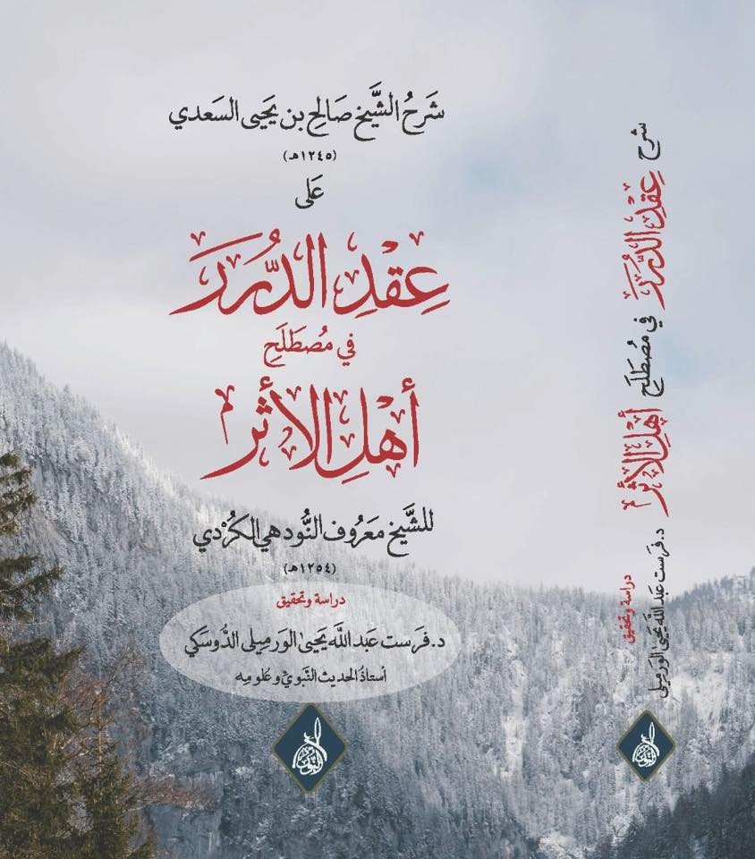 يُعنى هذا الكتاب بتحقيق وشرح منظومة “عقد الدرر في مصطلح أهل الأثر” للشيخ معروف النودهي (ت 1254هـ)، وشرحها للشيخ صالح السعدي (ت 1245 هـ)،