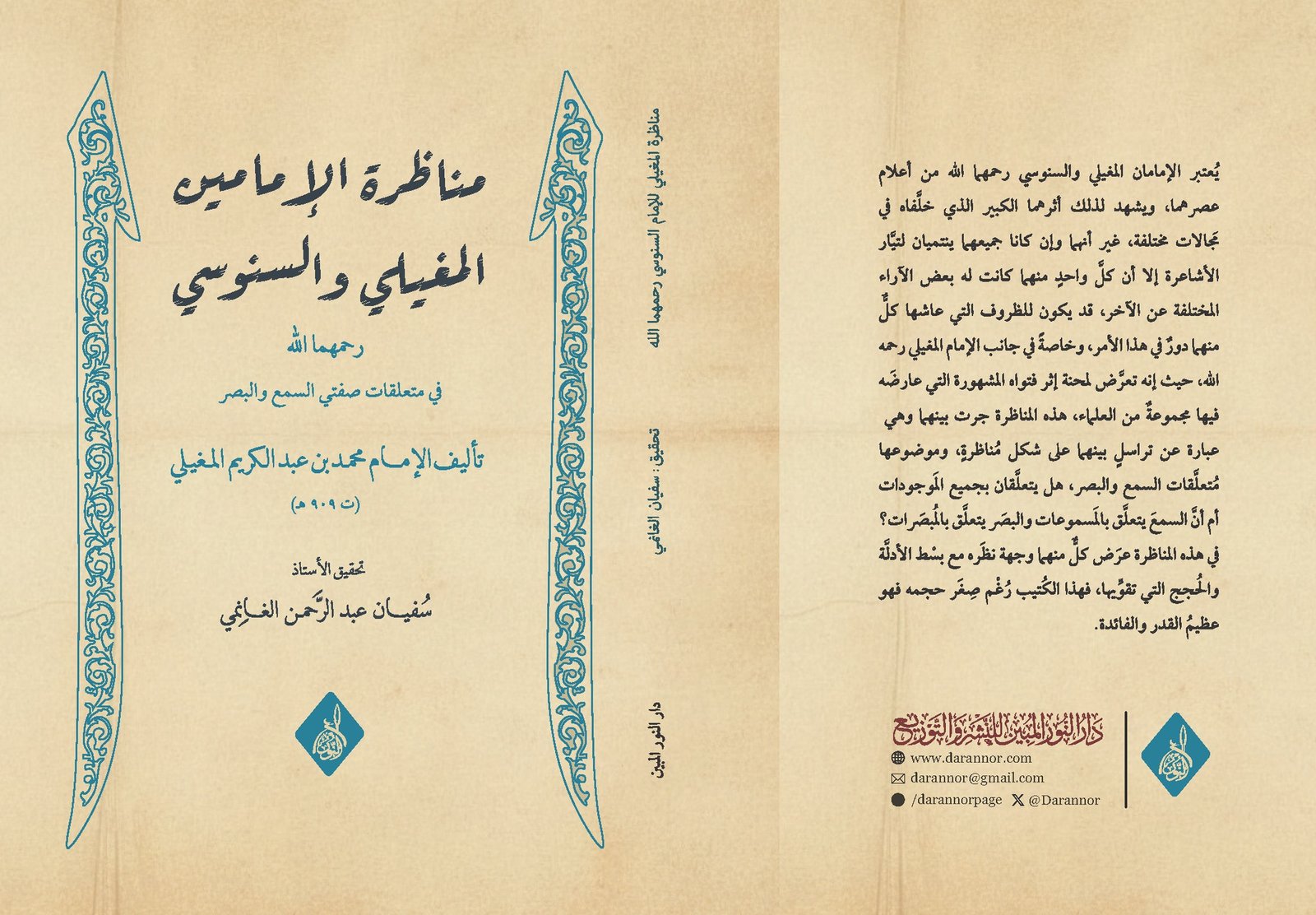 مناظرة الإمام المغيلي والإمام السنوسي في متعلقات صفتي السمع والبصر، وهو بحث متقدم في علم الكلام، بتحقيق أخينا الأستاذ سفيان الغانمي حفظه الله.
